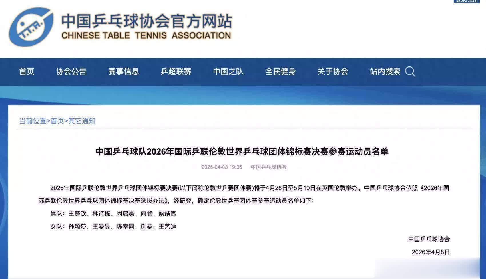 中国乒协公布伦敦世乒赛团体赛参赛运动员名单:股票配资炒
