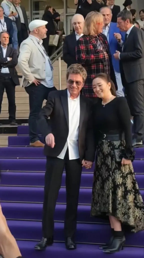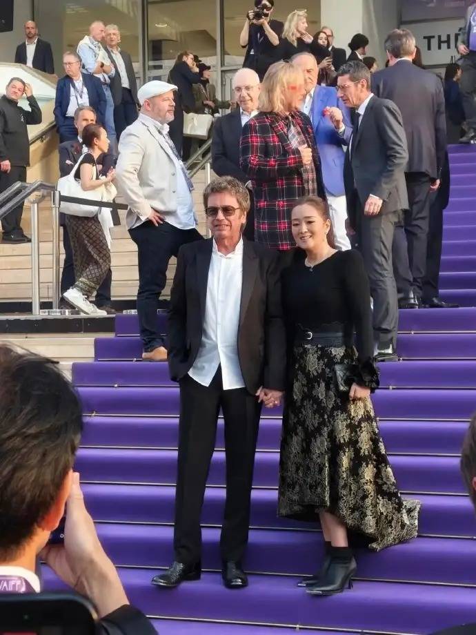 而比女王气场更抢镜的,是她与77岁丈夫让·米歇尔·雅尔的甜蜜互动。两人全程十指紧扣,面对外媒镜头毫不避讳。巩俐微微露出笑容,还特意将头偏向丈夫一侧,难得流露出小女人的依恋姿态。她的丈夫雅尔身着深色西装,身姿挺拔,两人并肩而立,亲昵互动尽显多年默契。
