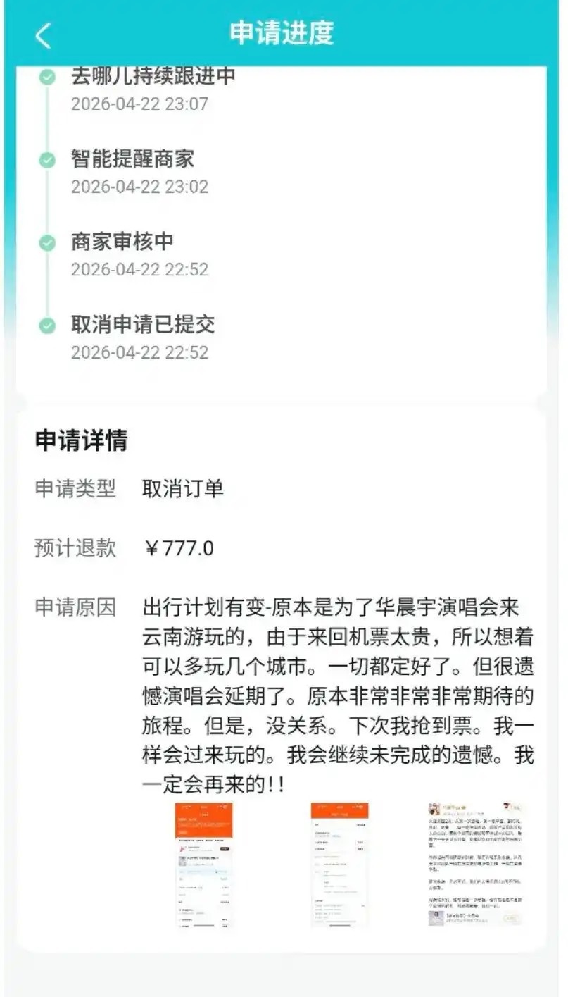 “我昨晚一晚上都睡不好,3点多才睡着,整个人都不好。”长沙市民张女士是华晨宇粉丝,4月22日晚,歌手华晨宇发文称演唱会因不可抗力延期并公布退票方案后,她表示心情受到极大影响。不过对于粉丝而言,尽快退掉已经订好的酒店是更为理智的选择。